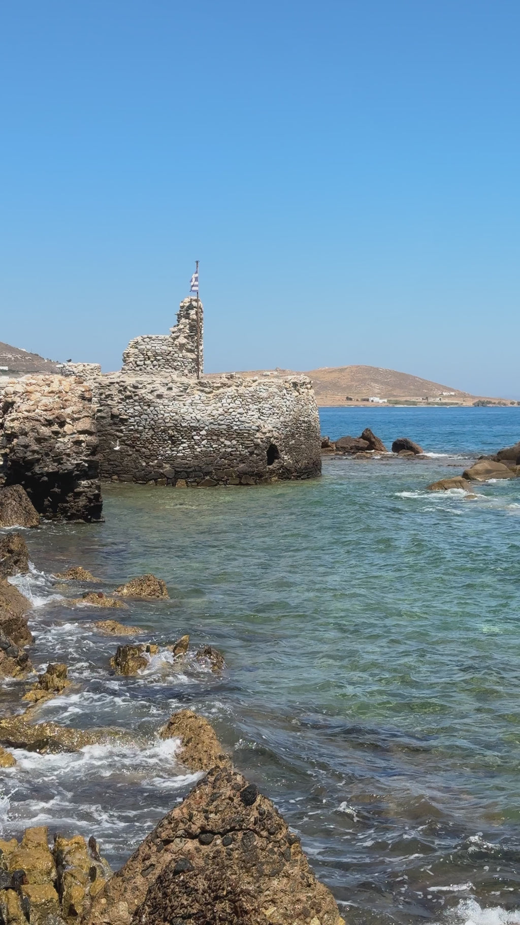 Its one-shoulder silhouette moves freely with the wind, echoing the calm rhythm of the Aegean.
